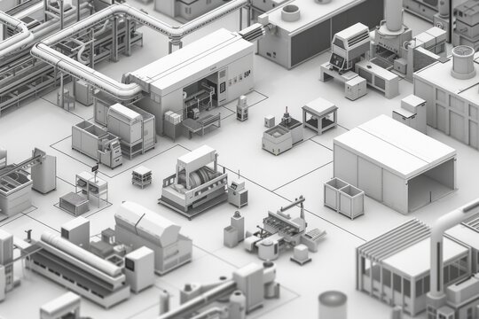 Isometric View of a Modern Industrial Factory Layout - Architectural Design for Posters, Cards, and Prints