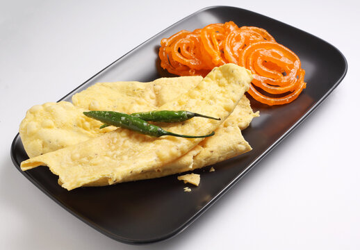 Indian Street Food Fafda Served With Chutney & Chilli