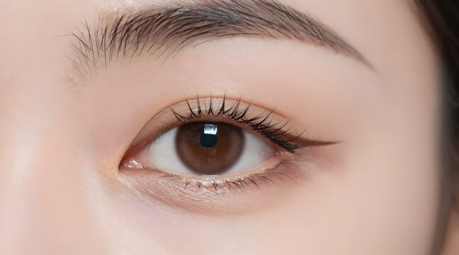 a young woman with long brown hair. she has a fair complexion and is wearing a dark top. her makeup includes subtle contouring and a light lipstick