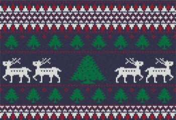 Christmas knit prints. Seamless pattern. Red knitted borders. Sweater winter textures. Fair isle traditional backgrounds. Holiday ornaments.