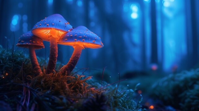 Glowing mushroom in deep forest