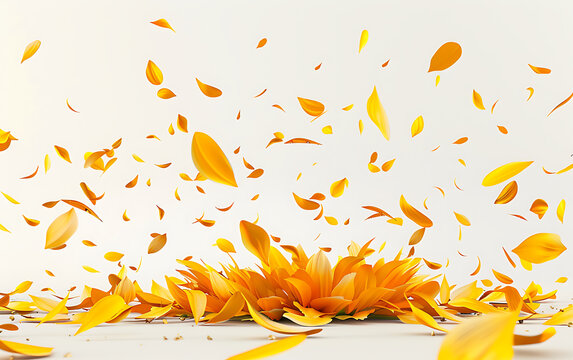 sunflower petals scattered on a white background