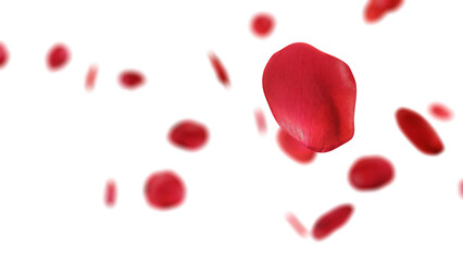 Falling red rose petals against white background