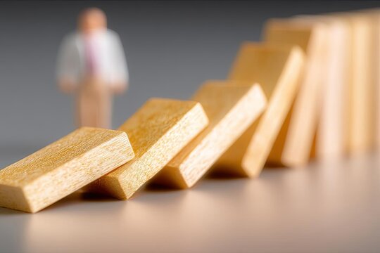 Stopping Domino Effect Miniature Person Preventing Falling Blocks