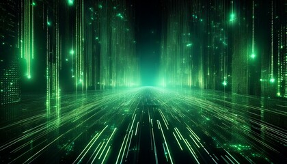 a background of green binary code on black, with the numbers one and zero falling across it in an endless pattern Generative AI