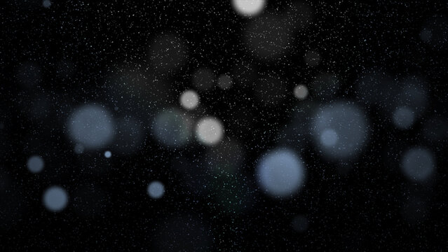 Drifting ornate snowflakes with soft bokeh and falling snow on frosted gradient backdrop