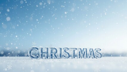 Silver Merry Christmas lettering with falling snow and winter trees