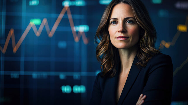 A digital line graph with sharp, glowing lines rising and falling in real time, set against a sophisticated dark background with floating digital elements.