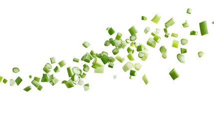 Green japanese onion falling in the air isolated on transparent background. PNG