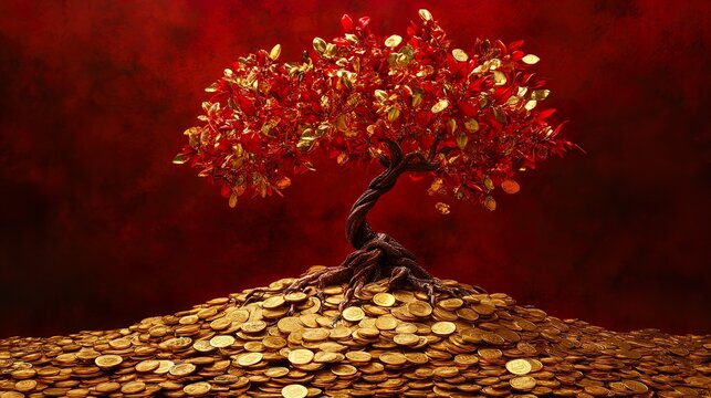 Gold confetti falling on vibrant red and black background
