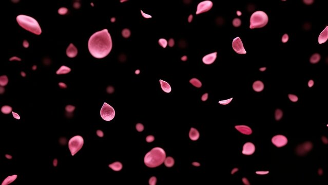 Gently falling pink rose petals create serene and romantic atmosphere