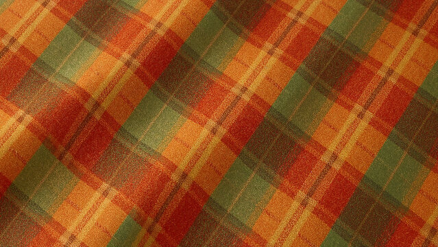 Autumn Plaid Fabric Texture in Warm Earth Tones Ideal for Backgrounds and Designs Featuring Cozy Rustic Fall and Winter Themes