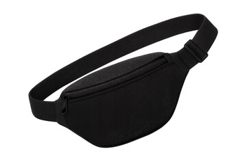 Black fanny pack isolated on transparent background, modern waist bag fashion