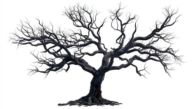 A large tree floating in the sky with exposed roots extending into the clouds, symbolizing balance, nature, and surrealism. Copy space