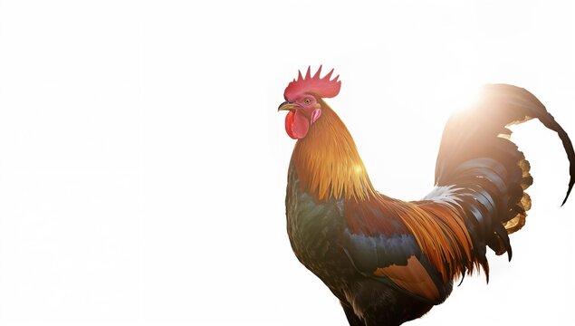 Rooster vocalizing during sunny morning, highlighting rural farm routine