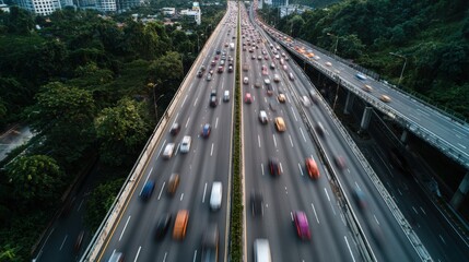Elegant photo of expressway top view, Road traffic an important infrastructure blur.