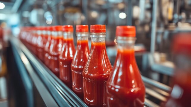 Bottled Ketchup Production Process in a Factory With Selective Focus on Assembly Line Details. Generative AI