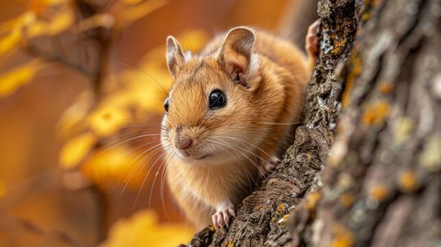 Cute gerbil fat tail crawls on wood, Garbil fat tail closeup head