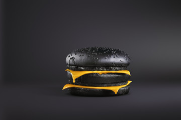 Total Painted in black burger with melting cheese. Painted food concept poster. Black friday sale. surrealism of food