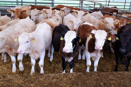 young calves in the calf rearing barn on a beef fattening farm in eastern Germany