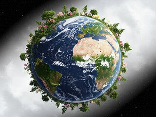 Earth Surrounded by Trees and Flowers in Space