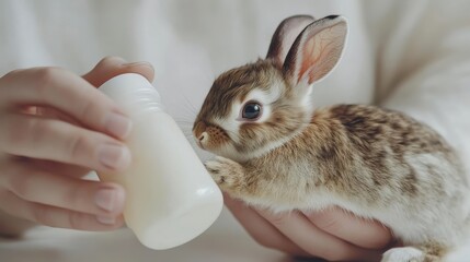 Cute Bunny Being Bottle Fed by a Caring Hand