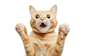 Ginger cat paws up open mouth isolated on transparent PNG