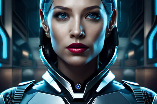 A woman with a robot face and a face painted in silver
