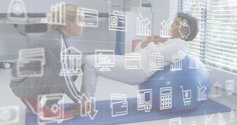 Personal fitness trainer assisting female client with abdominal crunch exercise