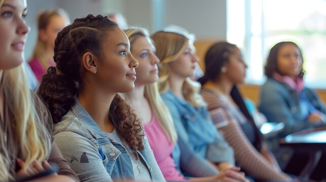 Young Women Attending Breast Cancer Awareness Workshop in University Classroom