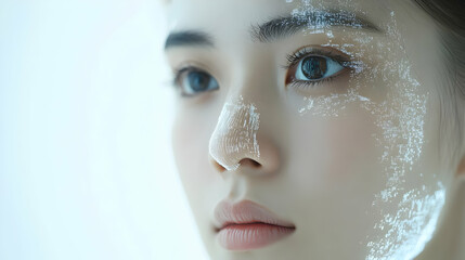 Close up of a woman's face with digital overlay.