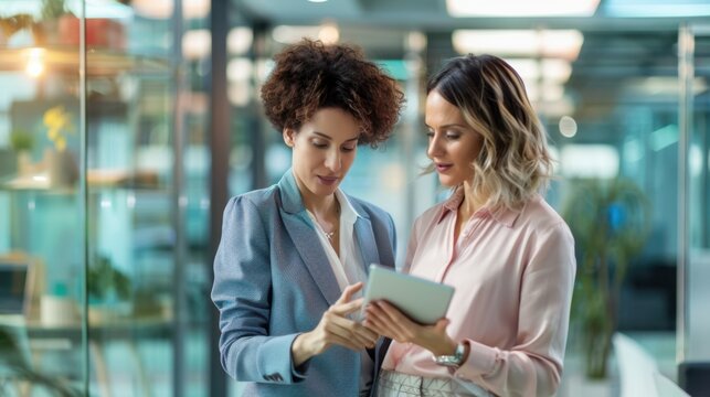 Theres nothing the digital tablet cant help them with. Shot of two young businesspeople using a digital tablet at work.