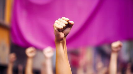 Purple fist raised in support of women s rights symbolizing empowerment independence and activism for the feminist movement on International Women s Day