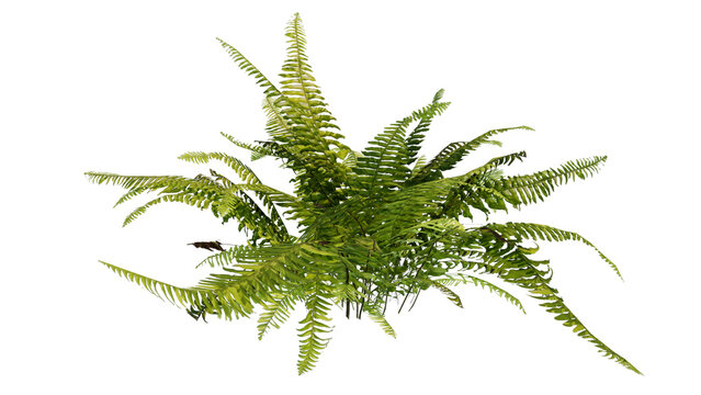 Tropical foliage plant bush nature frame layout of Fishtail fern or forked giant sword fern (Nephrolepis spp.) the shade garden landscaping shrub plant on white background with clipping path.
