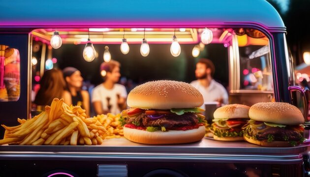 Evening Delights at a Summer Food Truck Event. Generative AI image
