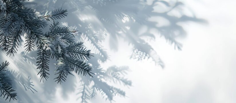 Blurred shadow of a Christmas tree branch against a white-gray backdrop, ideal for a copy space image.