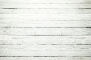 Old wooden planks with christmas trees. Brown background with snow and snowflakes