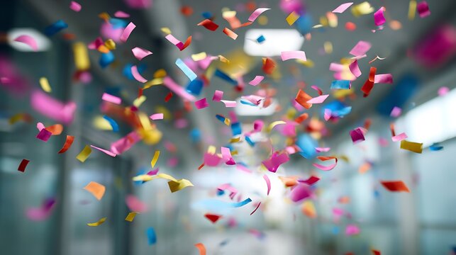 Corridor adorned with vibrant pennants and paper decorations defocused school celebration background festive hallway display educational institution event colorful streamer