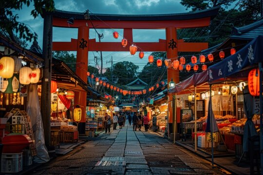 Diwali Market Stall Selling Decorations – A bustling market stall filled with colorful decorations like lanterns, diyas, and garlands, with people browsing and shopping.