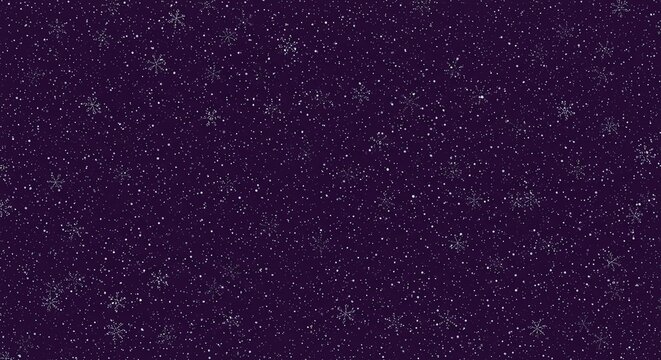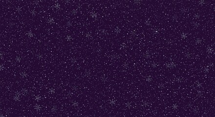 Dark purple background with numerous small, scattered white snowflakes creating a winter or starry night effect.