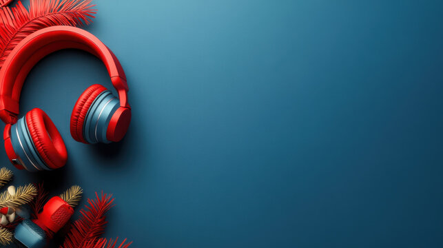 Christmas garlands can be featured around a condenser microphone for a festive touch in your holiday-themed copy space image.