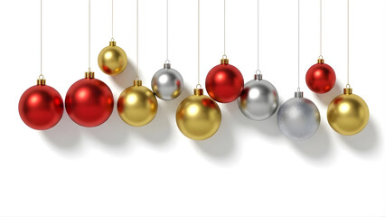 Four red and white striped christmas ornaments hanging on strings, r-isolated on a clear background. high resolution photography, hyperealistic, and detailed.