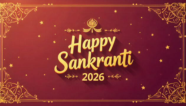 Happy Makar Sankranti 2026, minimalistic poster/banner for Sankranti theme wishes