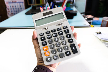 Dirty calculator in man hand