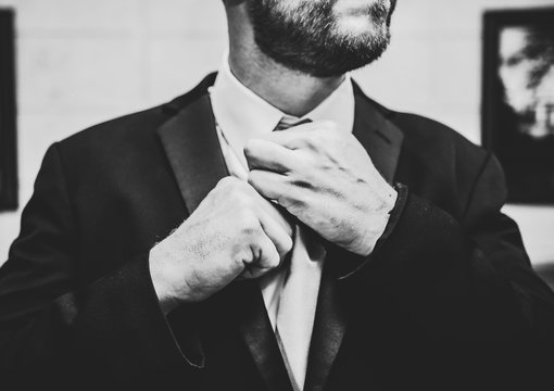Man adjusting his tie