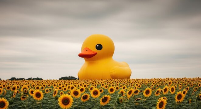 Adorable fluffy duckling emerging from cracked eggshell on yellow background