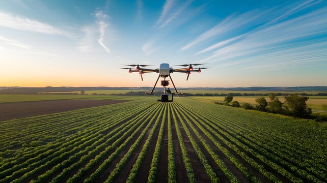 Future agricultural technology using drones to work to reduce labor, system in the field.