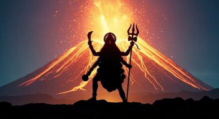 Epic fiery phoenix rising from volcano against a dramatic sky