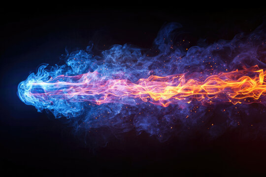Fiery wave of energy flow on dark canvas