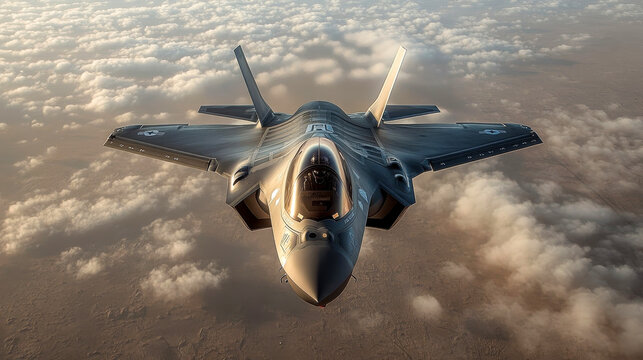 modern fifth generation combat air fighter jet in sky, advanced stealth military aircraft flying